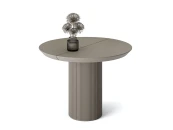 Подстолье диаметром 385 мм изготовлено из МДФ и покрыто пыльно-серой эмалью с двумя слоями защитного матового лака. При раскладывании стола подстолье делится на два полукруга.