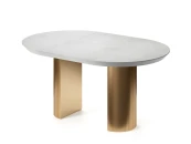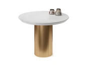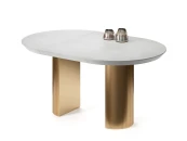 Подстолье диаметром 385 мм изготовлено из МДФ и покрыто золотой эмалью. При раскладывании стола подстолье делится на два полукруга.