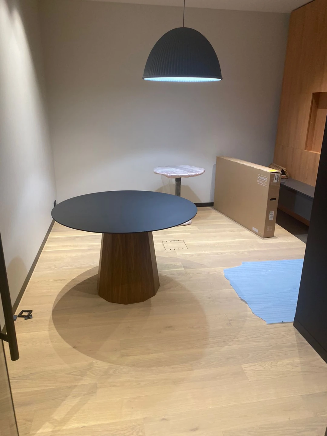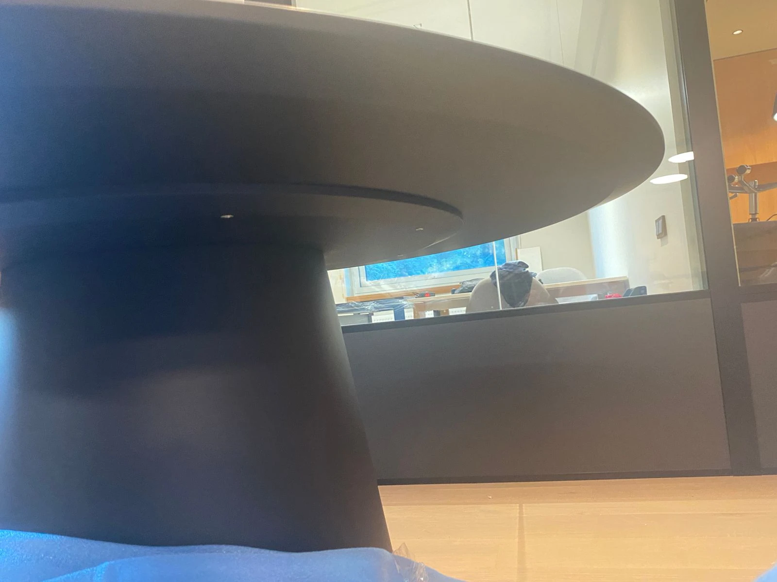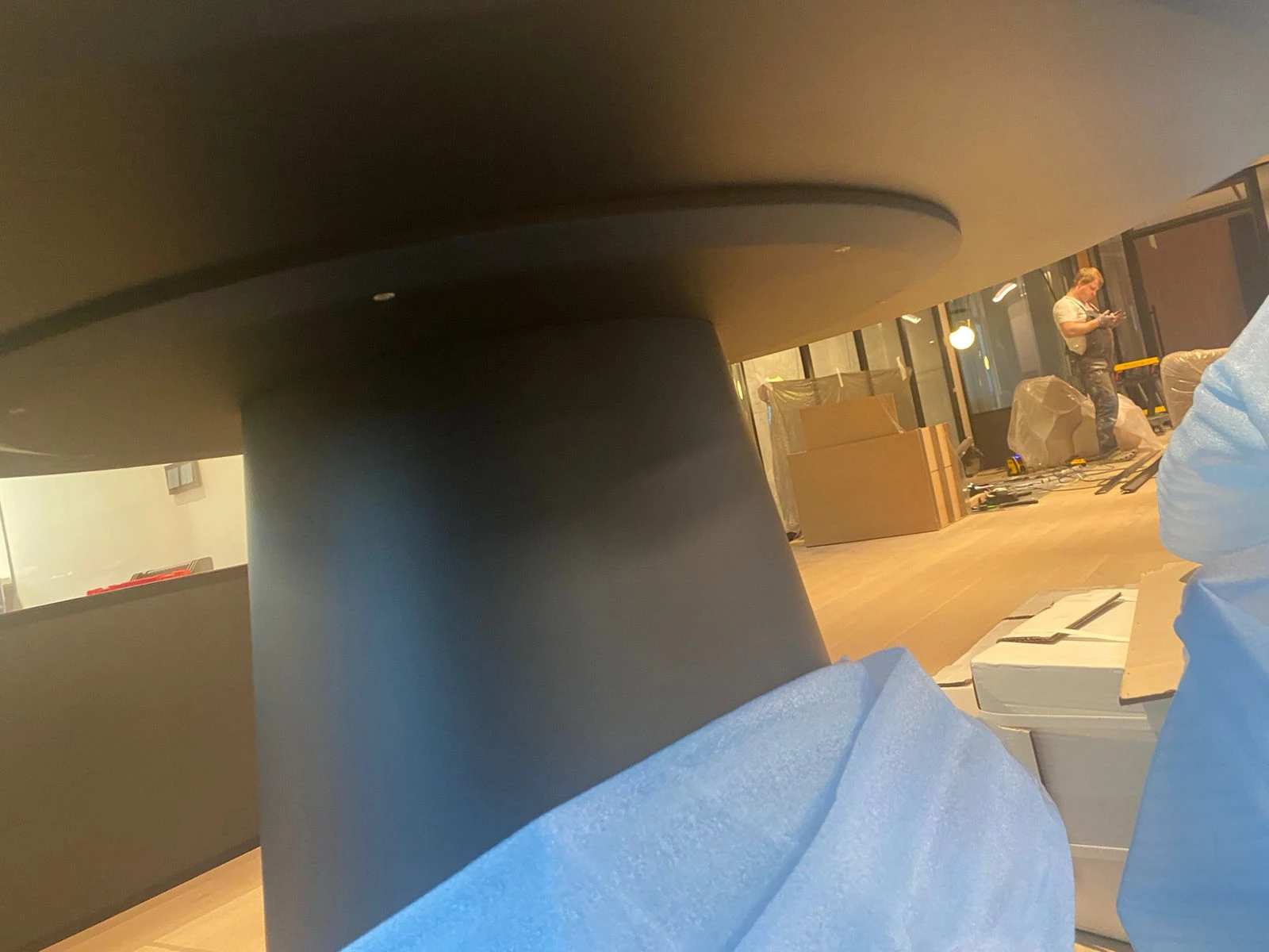 Подстолье изготовлено из МДФ и покрыто чёрной эмалью.