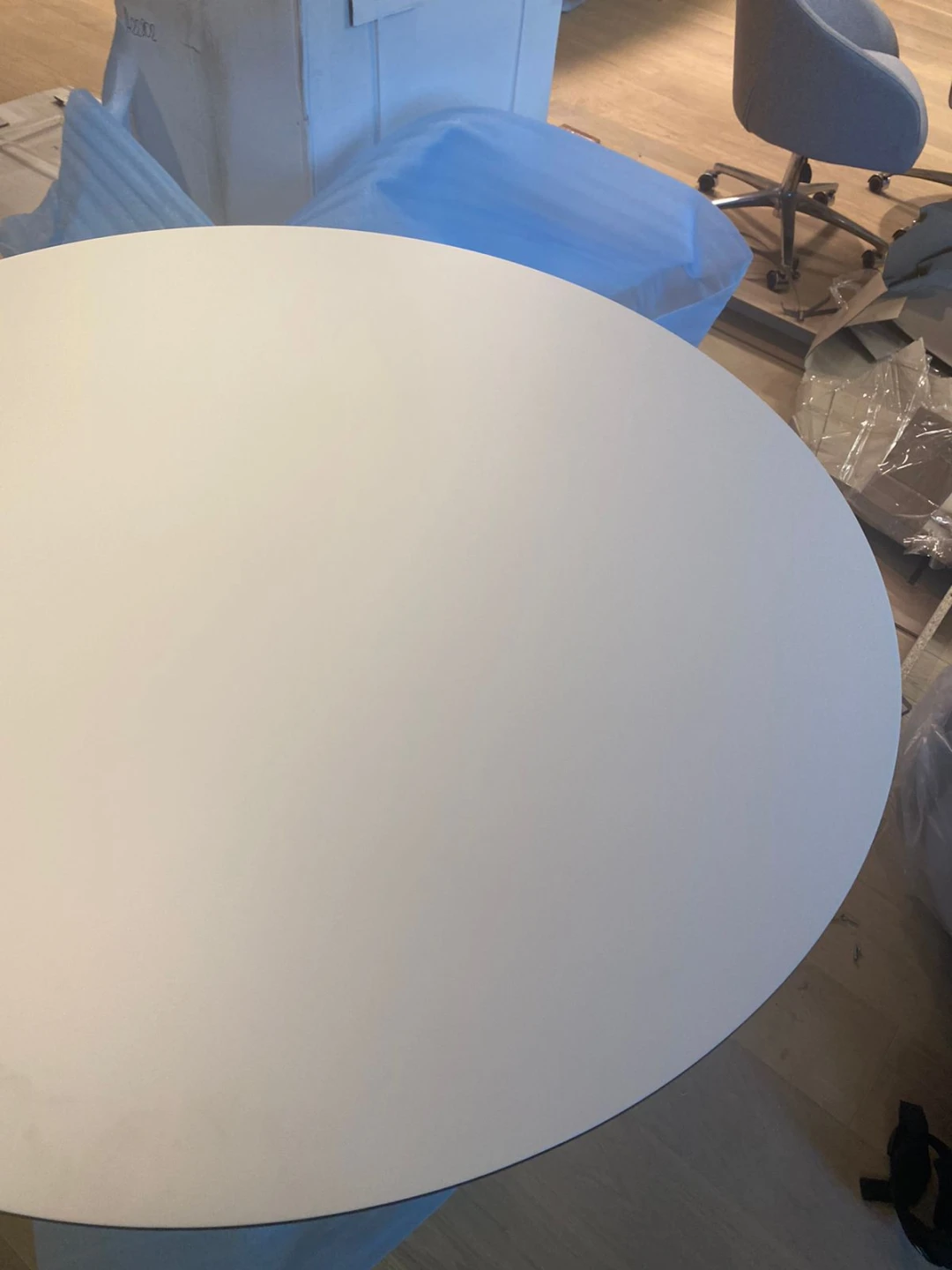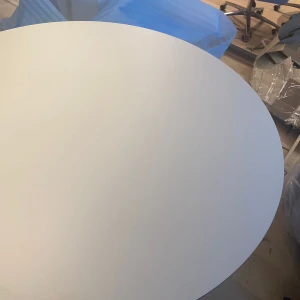 Столешница выполнена из МДФ со скошенной кромкой. Это позволяет придать столу визуальную лёгкость, но при этом не потерять высокие показатели прочности столешницы. В качестве материала отделки используется белая эмаль.