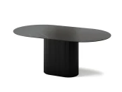Овальное подстолье размером 685х385 мм изготовлено из МДФ и покрыто черной эмалью с двумя слоями защитного матового лака.