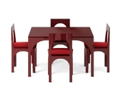 Современный стул Арм с архитектурными элементами и геометричной формой — идеальное решение для интерьеров с характером. Изогнутые арочные вырезы в ножках и спинке придают модели оригинальность, а мягкое сиденье в красной обивке обеспечивает комфорт.