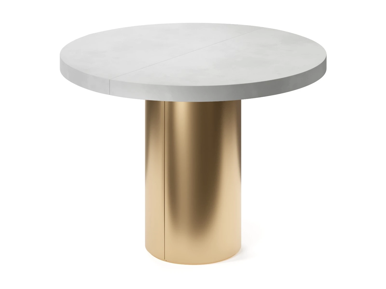 Подстолье диаметром 385 мм изготовлено из МДФ и покрыто белой эмалью. При раскладывании стола подстолье делится на два полукруга.
