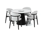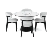 Обивка из белого букле в сочетании с каркасом из массива черного дуба придаёт изделию стильный и современный вид.