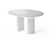 Подстолье диаметром 500 мм изготовлено из МДФ и покрыто белой эмалью с двумя слоями защитного матового лака. При раскладывании стола подстолье делится на два полукруга.