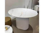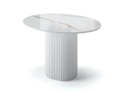 Овальное подстолье размером 685х385 мм изготовлено из МДФ и покрыто белой эмалью с двумя слоями защитного матового лака.