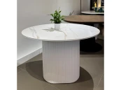 Столешница выполнена из МДФ со скошенной кромкой. Это позволяет придать столу визуальную лёгкость, но при этом не потерять высокие показатели прочности столешницы. В качестве материала отделки используется керамогранит c текстурой белого мрамора, который придаёт изделию высокую устойчивость даже к самым активным действиям на его поверхности, что обеспечивает долгие годы его эксплуатации для Вас.