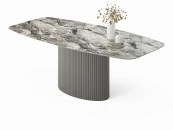 Столешница размером 1800х1100 мм выполнена из МДФ со скошенной кромкой. Это позволяет придать столу визуальную лёгкость, но при этом не потерять высокие показатели прочности столешницы. В качестве материала отделки используется HPL c текстурой темно-серого мрамора, который придаёт изделию высокую устойчивость даже к самым активным действиям на его поверхности, что обеспечивает долгие годы его эксплуатации для Вас.
