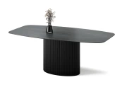 Столешница размером 2000х1100 мм выполнена из МДФ со скошенной кромкой. Это позволяет придать столу визуальную лёгкость, но при этом не потерять высокие показатели прочности столешницы. В качестве материала отделки используется HPL c текстурой чёрного мрамора, который придаёт изделию высокую устойчивость даже к самым активным действиям на его поверхности, что обеспечивает долгие годы его эксплуатации для Вас.