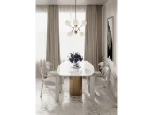 Фекда — изящный и современный стул с подлокотниками, сочетающий в себе строгость линий и мягкость форм. Широкая спинка с плавным изгибом и мягкая обивка создают высокий уровень комфорта, а открытая конструкция визуально облегчает модель, делая её лёгкой и элегантной. Лаконичный силуэт и сбалансированные пропорции делают стул Фекда универсальным решением для обеденной зоны, кабинета или переговорной.