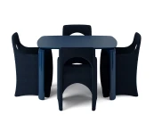 Подстолье изготовлено из массива березы с покрытием эмалью синего цвета и глянцевым лаком.