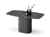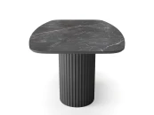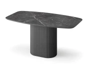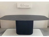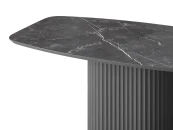 Столешница размером 1970х890 мм выполнена из МДФ со скошенной кромкой. Это позволяет придать столу визуальную лёгкость, но при этом не потерять высокие показатели прочности столешницы. В качестве материала отделки используется керамогранит с текстурой черного мрамора, который придаёт изделию высокую устойчивость даже к самым активным действиям на его поверхности, что обеспечивает долгие годы его эксплуатации для Вас.