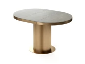 Круглая форма придает столу Меб изящность и гармонию, а раздвижной механизм позволяет легко разместить дополнительных гостей или насладиться простором во время семейных ужинов или специальных событий. Даже когда не раздвинут, он создает уютную атмосферу и становится фокусным элементом обеденной зоны. Стол Меб легко вписывается в различные стили интерьера, от современной элегантности до классического очарования.