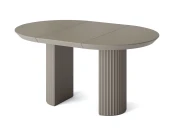 Подстолье диаметром 385 мм изготовлено из МДФ и покрыто пыльно-серой эмалью с двумя слоями защитного матового лака. При раскладывании стола подстолье делится на два полукруга.