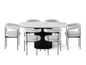 Дизайнерский стул Прайя — воплощение утончённого стиля и комфорта. Его округлая форма спинки словно обнимает, создавая ощущение уюта, а мягкая ткань обивки добавляет интерьеру тепла и тактильного удовольствия. Изящный металлический каркас подчёркивает лёгкость и изысканность модели.