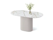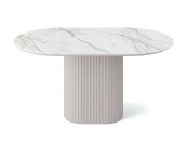 Столешница овальной формы и необычный дизайн подстолья отличает стол Рабин от остальных. За счёт обтекаемой формы столешницы и плавного мягкого узора подстолья он выглядит уютным и тёплым. За ним приятно сидеть, вкусно обедать, интересно читать или поддерживать беседу. Стол имеет скруглённые углы, что избавит Вас и Ваших детей от травм и синяков.