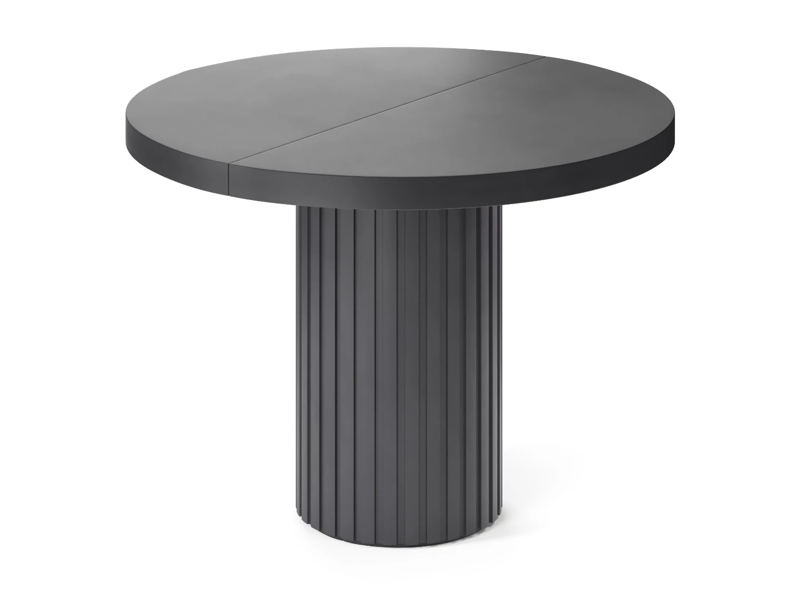 Подстолье диаметром 385 мм изготовлено из МДФ и покрыто чёрной эмалью. При раскладывании стола подстолье делится на два полукруга.