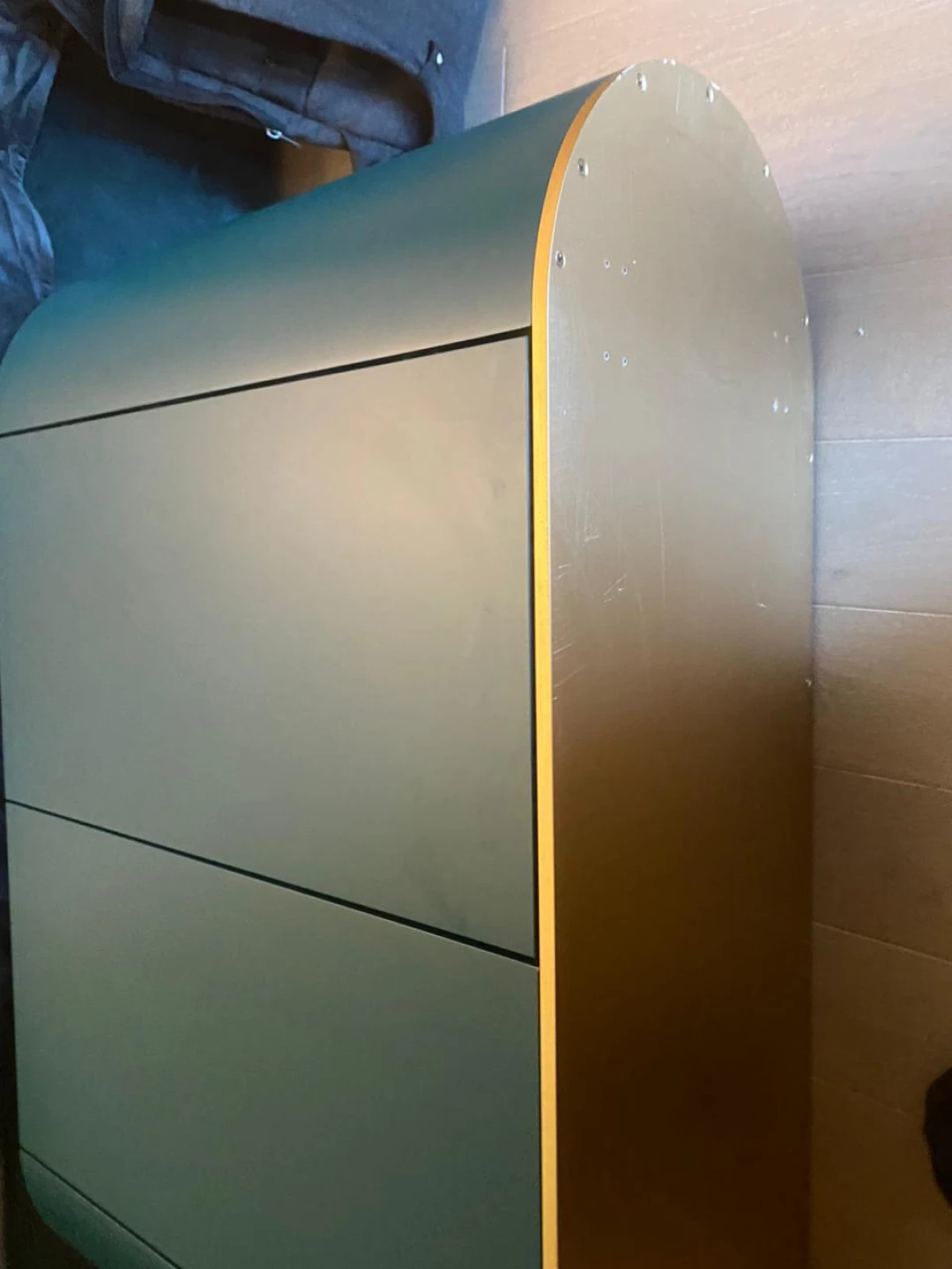 Несомненным преимуществом комода является утопленная вглубь столешница, которая в сочетании со скошенным краем создаёт барьер, позволяющий предотвратить падение мелких предметов.