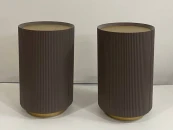 Тумба выполнена из МДФ и покрыта коричневой эмалью с двумя слоями защитного матового лака. Столешница и цоколь покрыты золотой эмалью.