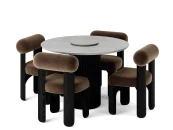 Танин — стул с характером. Его округлая форма, плавные линии и мягкая обивка создают образ, в котором комфорт встречается с выразительным дизайном. Закруглённые массивные ножки из дуба придают модели устойчивость и визуальную силу, а мягкое сиденье и спинка обеспечивают удобную посадку.