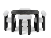 Танин — стул с характером. Его округлая форма, плавные линии и мягкая обивка создают образ, в котором комфорт встречается с выразительным дизайном. Закруглённые массивные ножки придают модели устойчивость и визуальную силу, а мягкое сиденье и спинка обеспечивают удобную посадку.