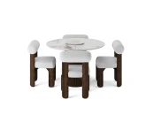 Танин — стул с характером. Его округлая форма, плавные линии и мягкая обивка создают образ, в котором комфорт встречается с выразительным дизайном. Закруглённые массивные ножки из дуба придают модели устойчивость и визуальную силу, а мягкое сиденье и спинка обеспечивают удобную посадку.