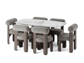 Танин — стул с характером. Его округлая форма, плавные линии и мягкая обивка создают образ, в котором комфорт встречается с выразительным дизайном. Закруглённые массивные ножки придают модели устойчивость и визуальную силу, а мягкое сиденье и спинка обеспечивают удобную посадку.