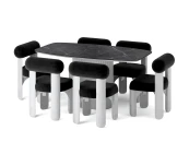 Танин — стул с характером. Его округлая форма, плавные линии и мягкая обивка создают образ, в котором комфорт встречается с выразительным дизайном. Закруглённые массивные ножки из дуба придают модели устойчивость и визуальную силу, а мягкое сиденье и спинка обеспечивают удобную посадку.