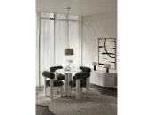Танин — стул с характером. Его округлая форма, плавные линии и мягкая обивка создают образ, в котором комфорт встречается с выразительным дизайном. Закруглённые массивные ножки придают модели устойчивость и визуальную силу, а мягкое сиденье и спинка обеспечивают удобную посадку.