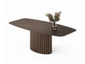 Овальное подстолье размером 700х450 мм изготовлено из массива дуба также в коричневой тонировке.