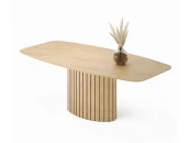 Столешница размером 2000х1100 мм выполнена из МДФ со скошенной кромкой. Это позволяет придать столу визуальную лёгкость, но при этом не потерять высокие показатели прочности столешницы. В качестве материала отделки используется натуральный шпон дуба.