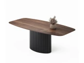 Столешница размером 2200х1100 мм выполнена из МДФ со скошенной кромкой. Это позволяет придать столу визуальную лёгкость, но при этом не потерять высокие показатели прочности столешницы. В качестве материала отделки используется натуральный шпон американского ореха.