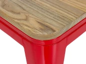 Каркас и ножки металлические, цвет красный глянцевый. Сидение натуральный массив вяз.
