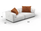 Дизайнерский диван Kano удачно впишется в любой современный интерьер. Диван производится вручную, каркас выполнен из березовой фанеры. По дополнительному запросу возможно изменение типа и цвета ткани обивки из представленной палитры. Подушки сидения из ППУ. Подушки спинки и декоративные подушки с наполнением синтешар (холлофайбер).