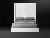 На фото представлена кровать с базовой высотой изголовья (размеры указаны в карточке товара).