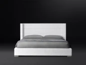 На фото представлена кровать с базовой высотой изголовья (размеры указаны в карточке товара).