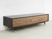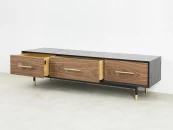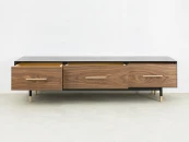 Материалы: корпус - МДФ, шпон ясеня, полуглянцевый черный лак; ящики - массив ясеня, бесцветное минеральное масло; фасады - МДФ, шпон американского ореха, полуматовый лак; декоративная фурнитура - латунь. Фурнитура - направляющие скрытого типа с доводчиками. Возможен выбор других типов отделки, варианты представлены на последнем фото.