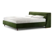 Изящные изгибы изголовья, плавно переходящие от боковой части в приспинную, создают притягательный и легкий дизайн этой кровати. Изголовье с ровными горизонтальными линиями глубокой стяжки обтянуто тканью со всех сторон, кровать можно разместить даже в центре спальни. А благодаря возможности выбора цвета ткани и тонировки ножек она будет отлично смотреться в разных интерьерах.