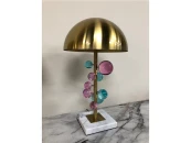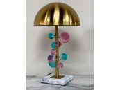 Лампа настольная декоративная MOLECULE способна стать замечательным элементом любого декора. Металлический плафон и стойка цвета латунного золота, на основании из белого натурального мрамора, будут прекрасно сочетаться с любым цветовым решением интерьера, не нарушая его. Создает мягкое рассеянное свечение. Может использоваться в качестве дополнительного источника света в прикроватной зоне, особенно детской. Светильник украшен хрустальными цветными шарами.
