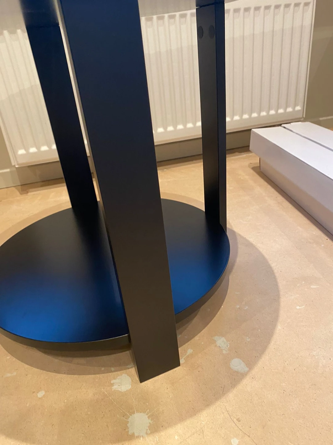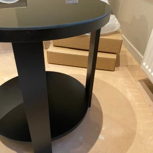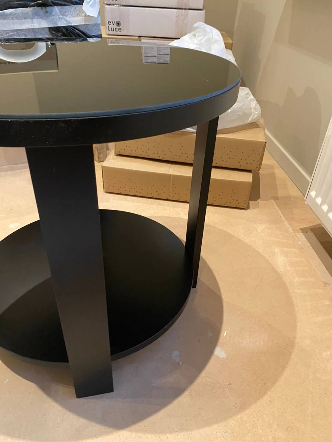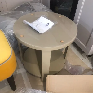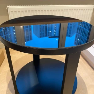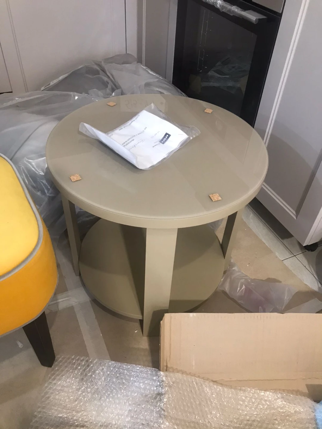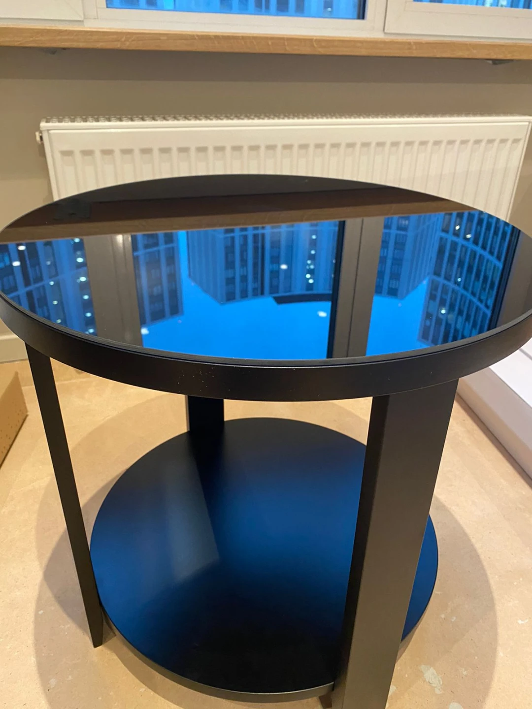 Круглый журнальный стол. Cтолешница декорирована цветным стеклом.