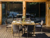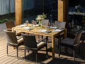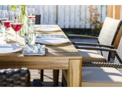 Стол AURA массив акации, отделка экомаслом под натуральный тик, анодированная фурнитура из нержавеющей стали