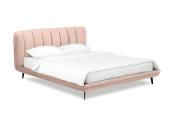 Прочные ножки из металла незаметно приподнимают корпус над полом. Поэтому кровать смотрится воздушно. Также это упрощает уборку. Мягкие изящные царги плавно перетекают в изголовье, единство с которым подчеркивается рельефным кантом.