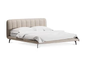 Прочные ножки из металла незаметно приподнимают корпус над полом. Поэтому кровать смотрится воздушно. Также это упрощает уборку. Мягкие изящные царги плавно перетекают в изголовье, единство с которым подчеркивается рельефным кантом.