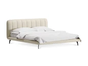 Прочные ножки из металла незаметно приподнимают корпус над полом. Поэтому кровать смотрится воздушно. Также это упрощает уборку. Мягкие изящные царги плавно перетекают в изголовье, единство с которым подчеркивается рельефным кантом.
