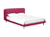 Прочные ножки из металла незаметно приподнимают корпус над полом. Поэтому кровать смотрится воздушно. Также это упрощает уборку. Мягкие изящные царги плавно перетекают в изголовье, единство с которым подчеркивается рельефным кантом.
