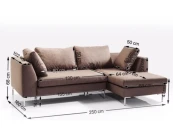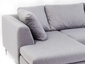 Современный классический угловой диван из серой ткани и тонкими полированными ножками из нержавеющей стали и четырех свободных подушек, с помощью которых Вы можете почувствовать себя комфортно в соответствии со своим желанием. Угловой диван сэкономит место, где двум отдельным диванам не хватает места. Корпус: ДСП естественная/необработанная, МДФ естественная/необработанная, обивка: 100% полиэстер, ножки: нержавеющая сталь.