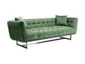 Этот мягкий трехместный диван является воплощением стиля благодаря своей текстурированной обивке элегантного елово- зеленого цвета и классическому современному дизайну. На нем будет приятно провести время с друзьями или в кругу семьи. Каркас: матовая сталь. Обивка: 58% вискоза, 42% полиэстер. Наполнитель сиденья: полиэстер 30 кг/м3 . Наполнитель спинки: полиэстер 28 кг/м3. Макс. допустимая нагрузка 220 кг. Высота сиденья 46 см. Ручная работа. Разрешена сухая чистка. Испытание на истирание: Мартиндейл 25000.