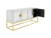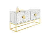 Корпус: МДФ лакированная, ножка/основание: сталь с порошковым покрытием, полка: прозрачное стекло, ручка: сталь с порошковым покрытием, обшивка: зеркальное стекло. Макс. допустимая нагрузка 100 кг.