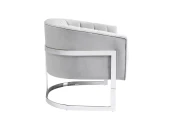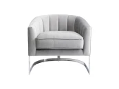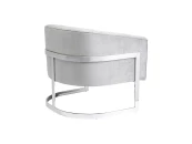 Это кресло в стиле ар-деко выглядит как изделие из стильной лаунж-зоны в роскошном отеле. Хромированный каркас и благородный цвет = серый [gray.jpg] цвет придают чистую элегантность бархатному креслу, а мягкие боковины и спинка по всей длине со стеганой декоративной строчкой обеспечивают максимальный комфорт при посадке. Каркас: хромированная нержавеющая сталь, обивка: 100 % полиэстер (бархатный вид), наполнитель: 33 кг/м3 пенополиуретан. Макс. допустимая нагрузка 150 г., высота сиденья 52 см.
