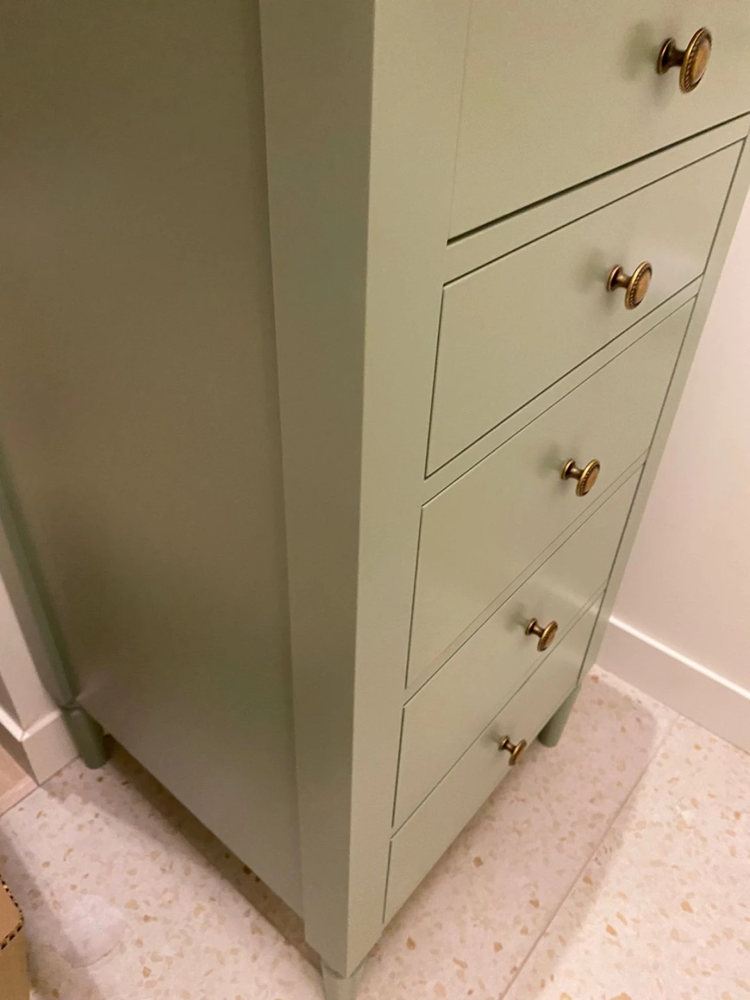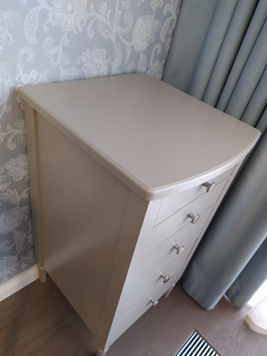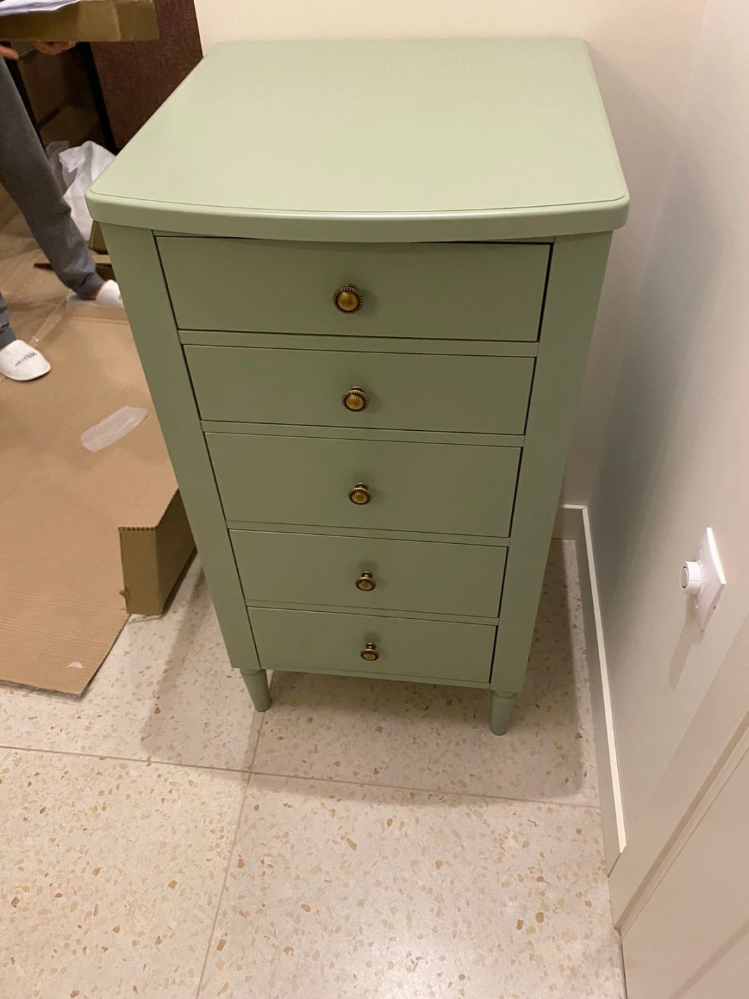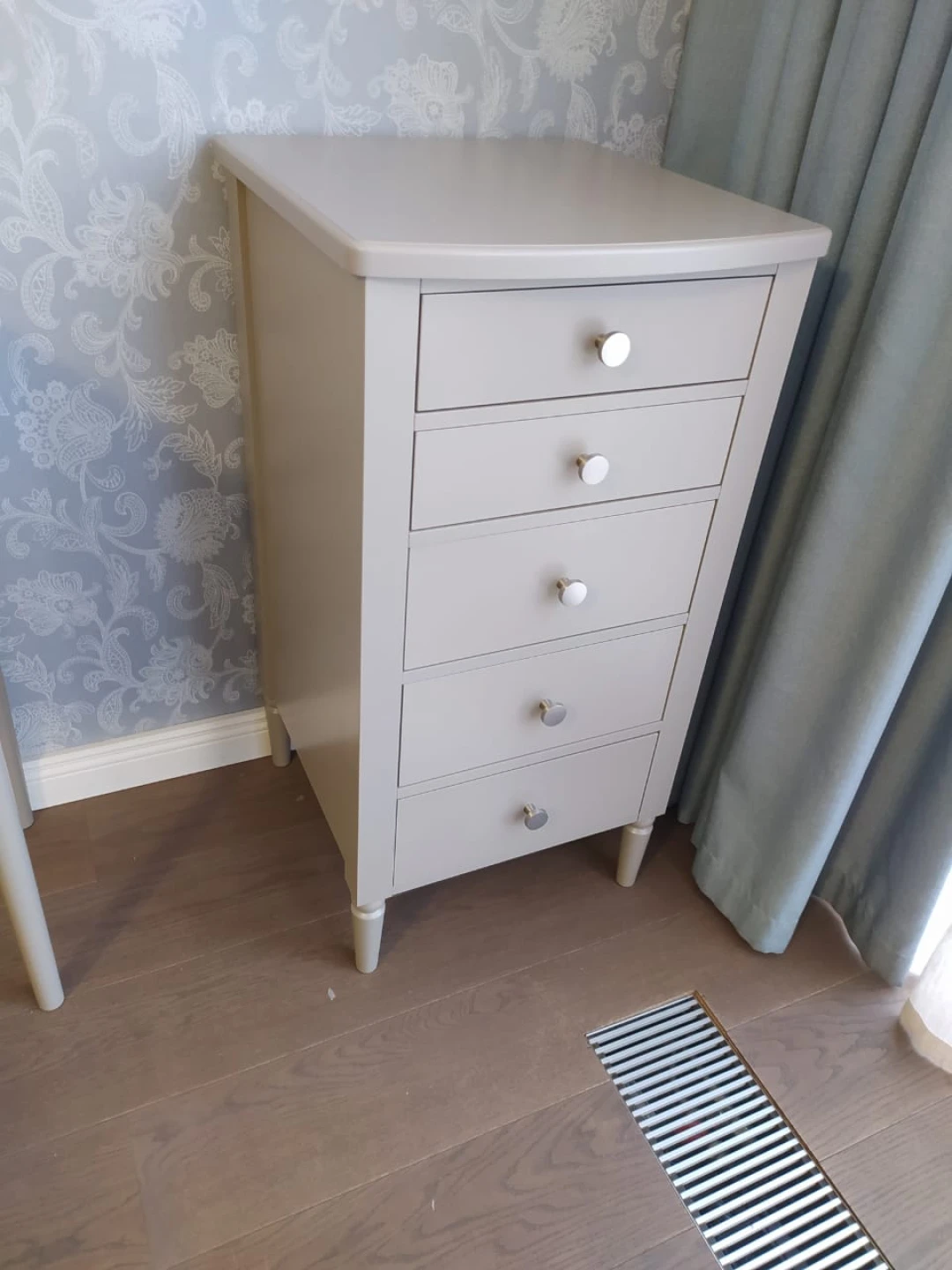 Комод имеет 5 выдвижных ящиков. Рекомендуется крепить к стене.